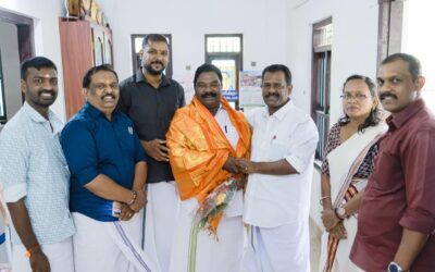 കെ.പി.എം.എസ് സംസ്ഥാന പ്രസിഡന്റായി തിരഞ്ഞെടുക്കപ്പെട്ട സനീഷ് കുമാറിനെ സന്ദർശിച്ച് എൻഡിഎ സ്ഥാനാർഥി കെ അജിത്